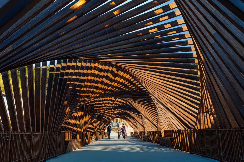 ??緊接著,設(shè)計(jì)師們聯(lián)手用竹子打造了一個(gè)充滿設(shè)計(jì)感的竹藝村落——龍泉國(guó)際竹建筑文創(chuàng)生活村落。